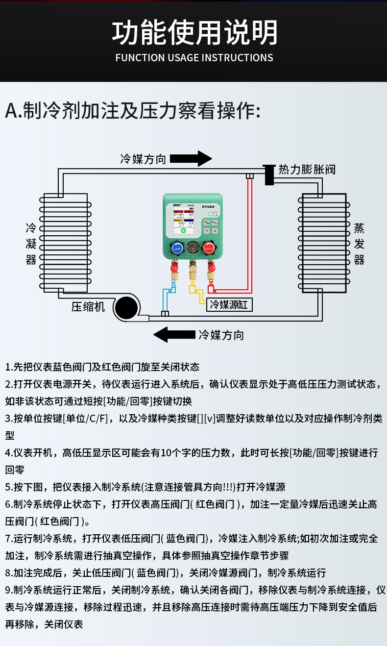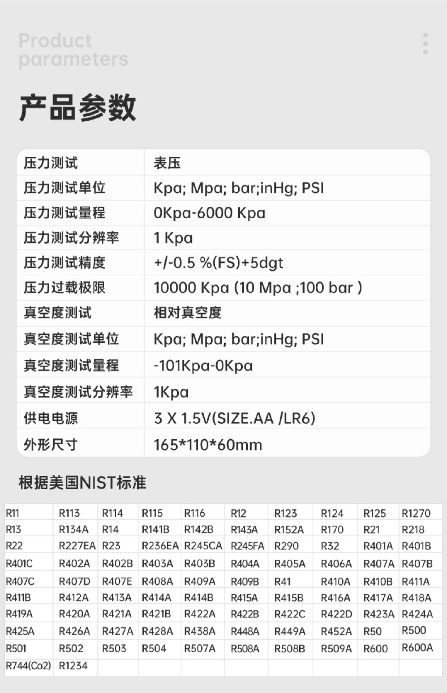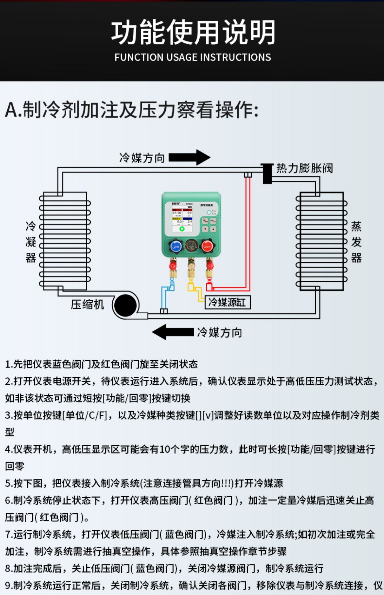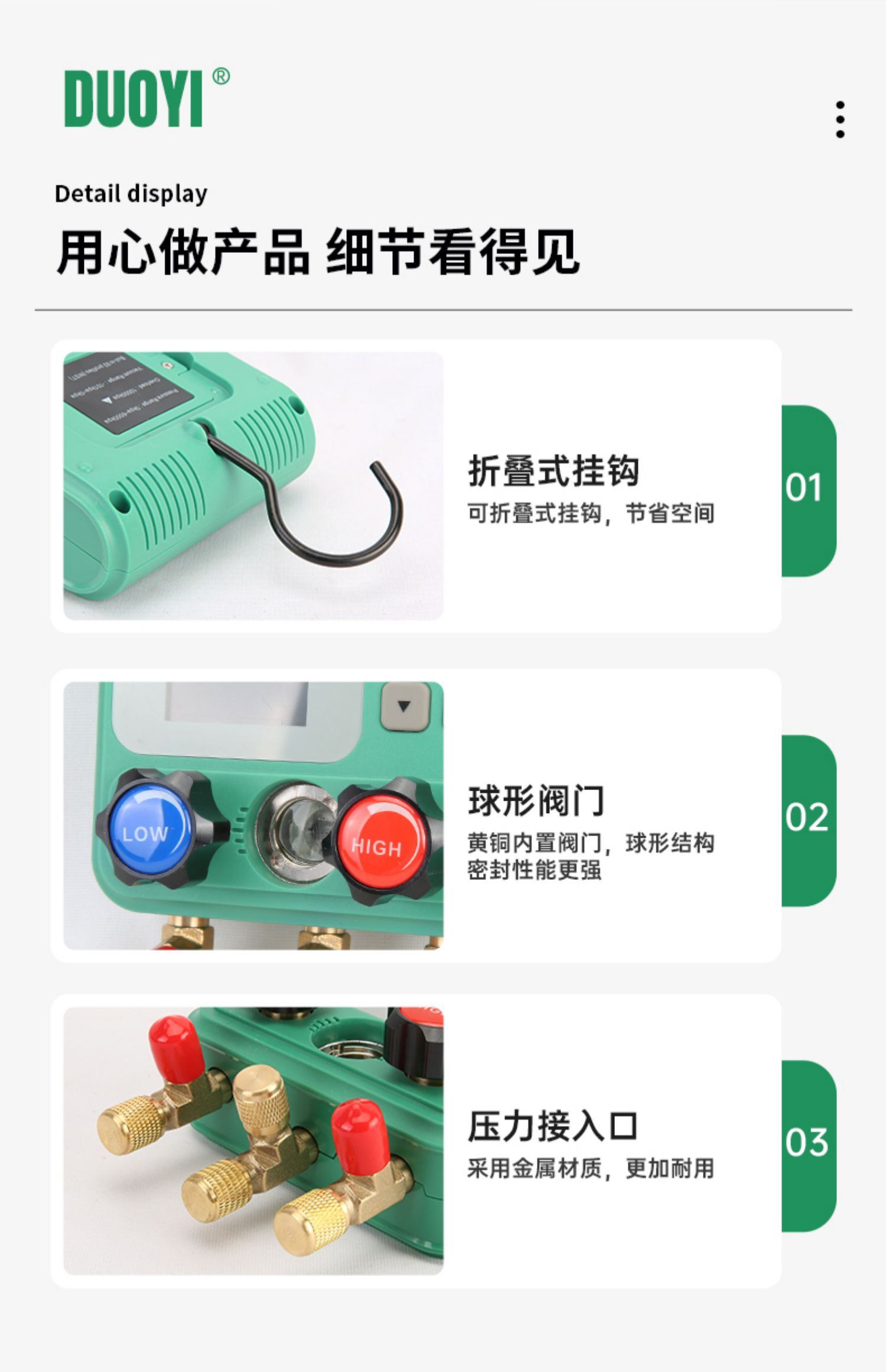 DY523电子空调冷媒加氟表组压力表汽车制冷剂加液维修真空表